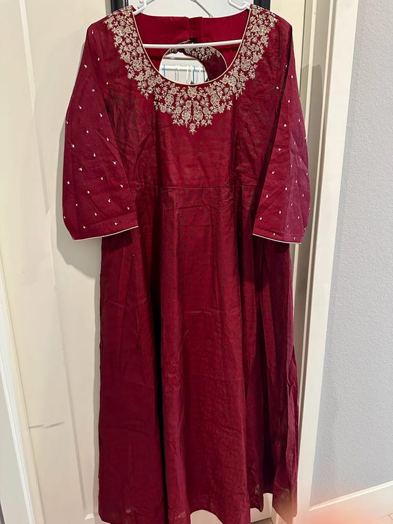 Elegant Embroidered Silk Cotton Long Kurti - XL