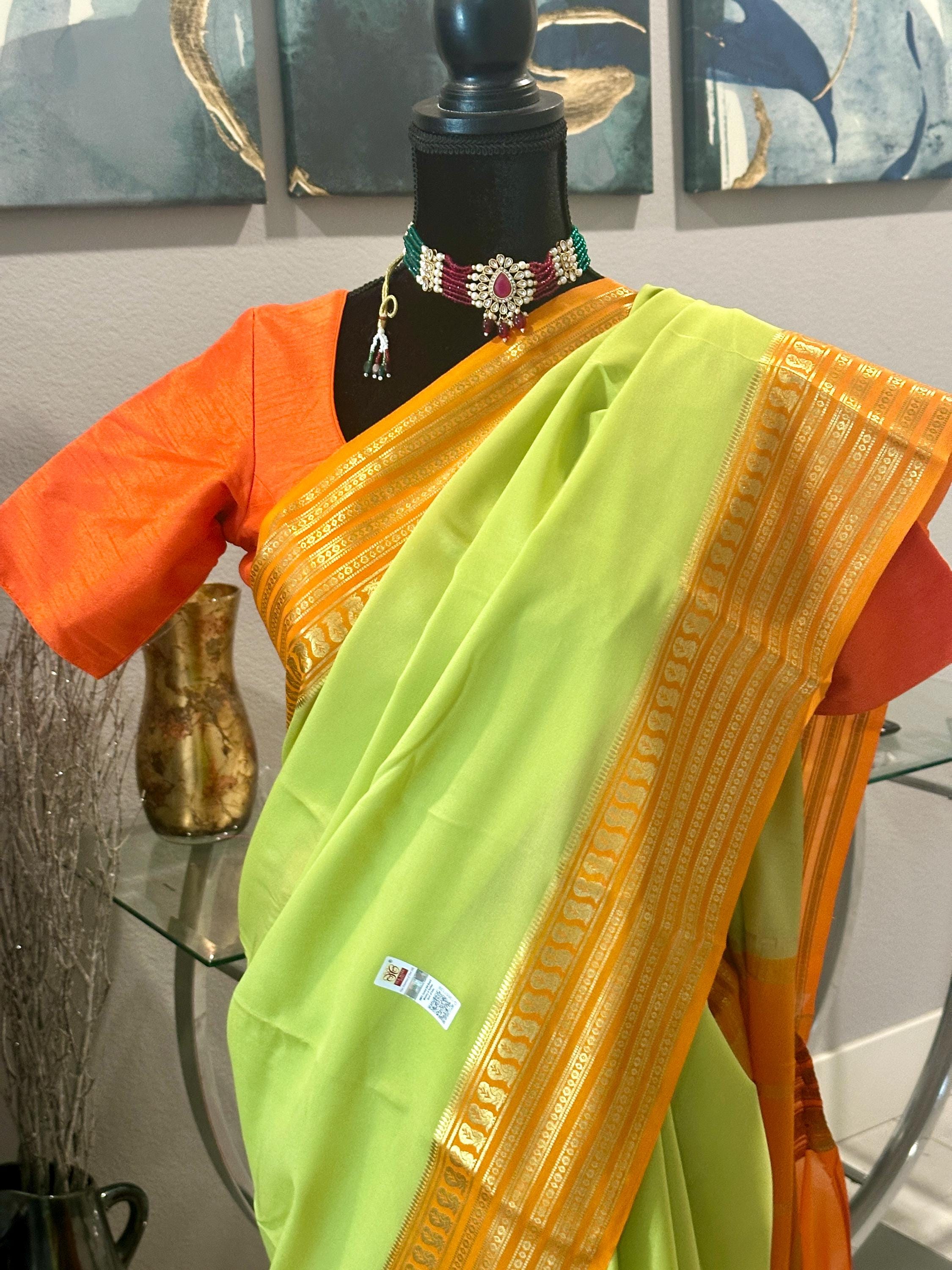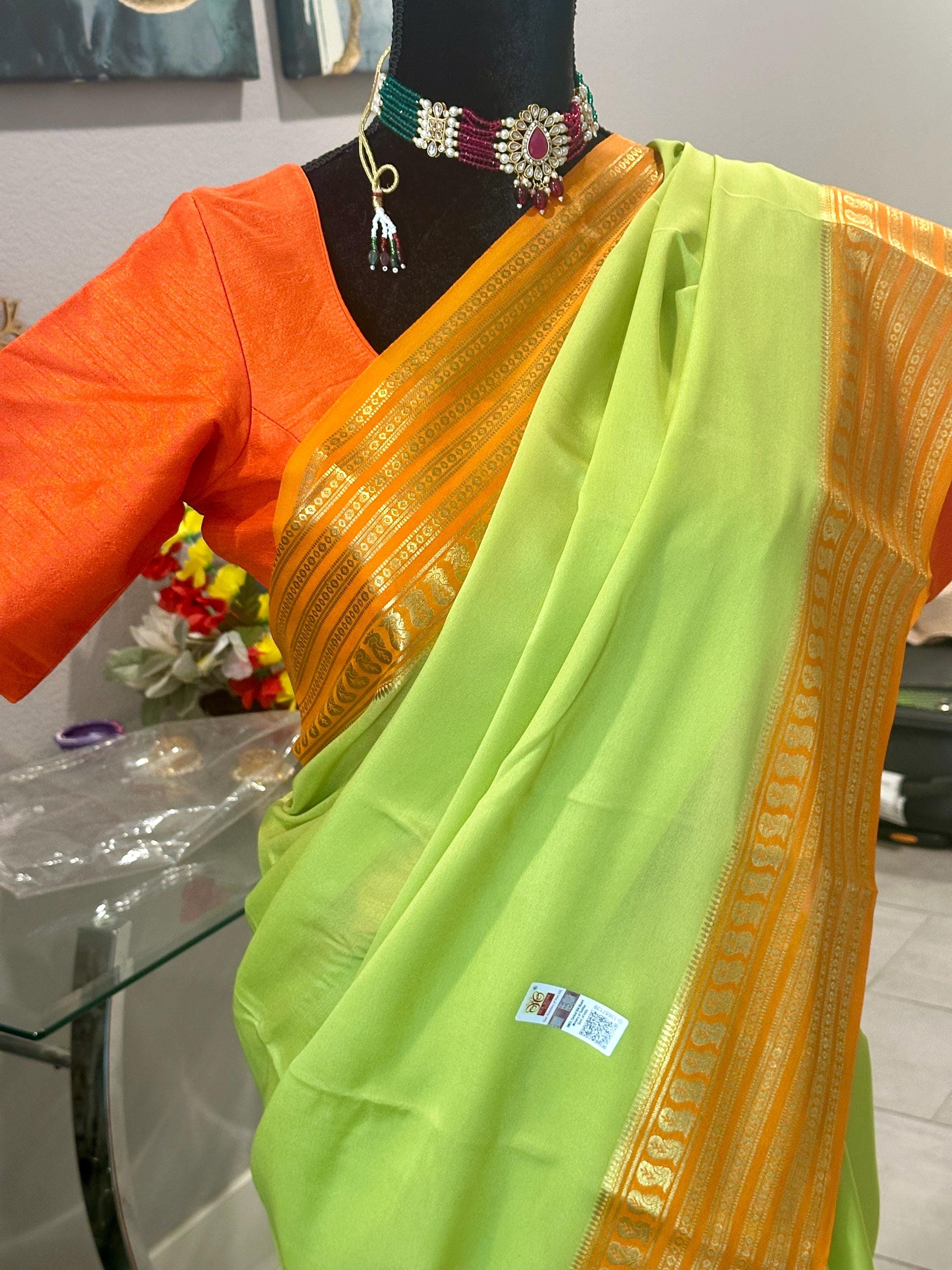 Size 36-38 optional blouse | Pure, silk mark certified Mysore silk saree | Green pattu saree | ethnic silk sarees online usa | mysore pattu
