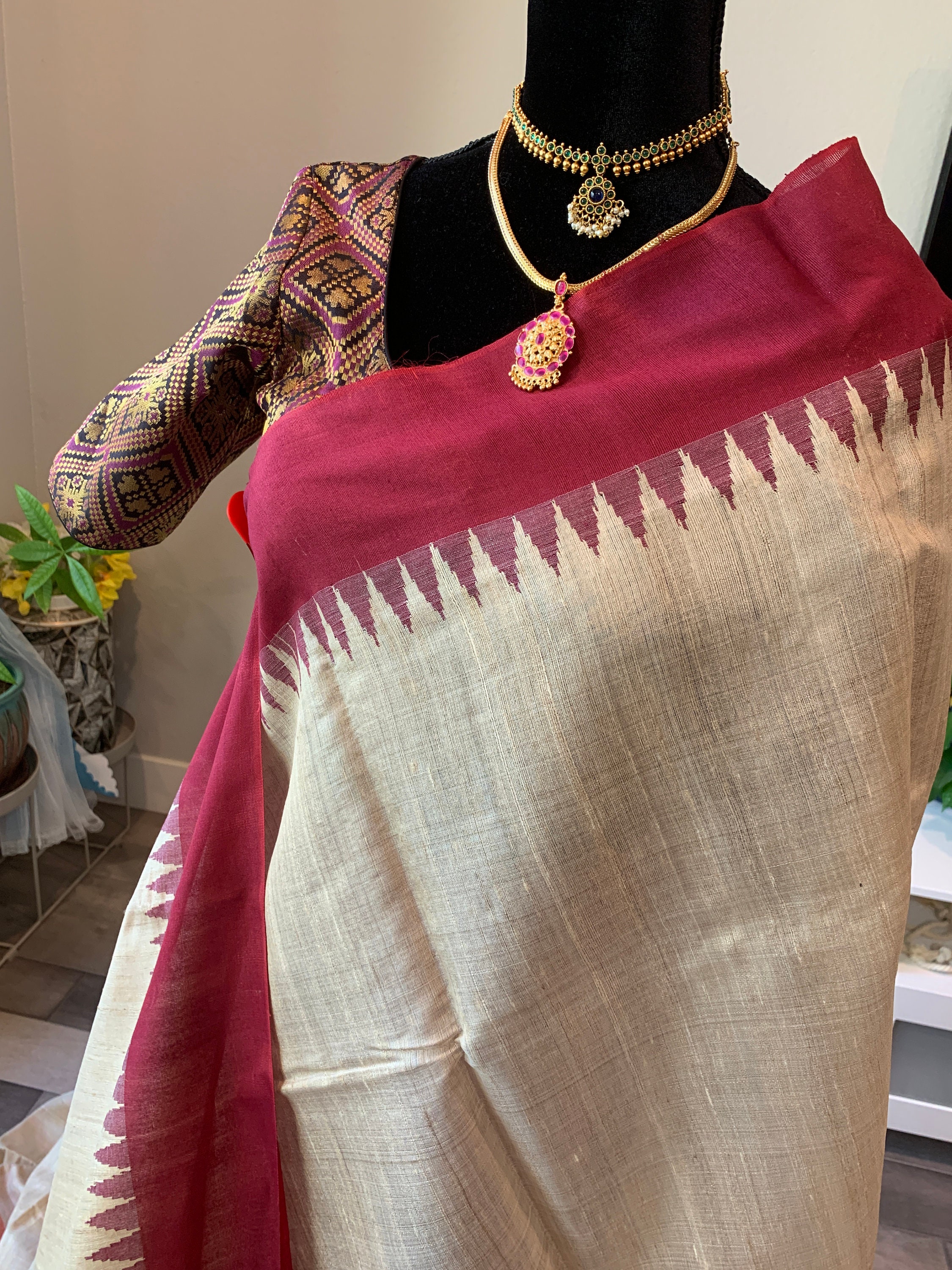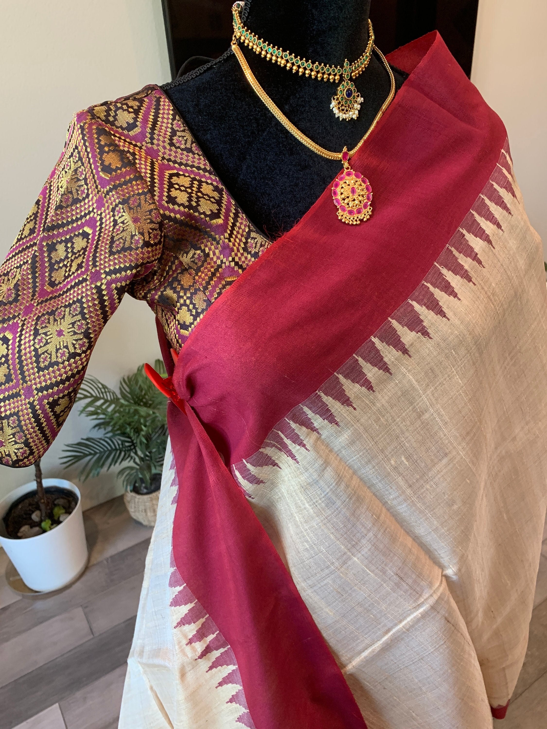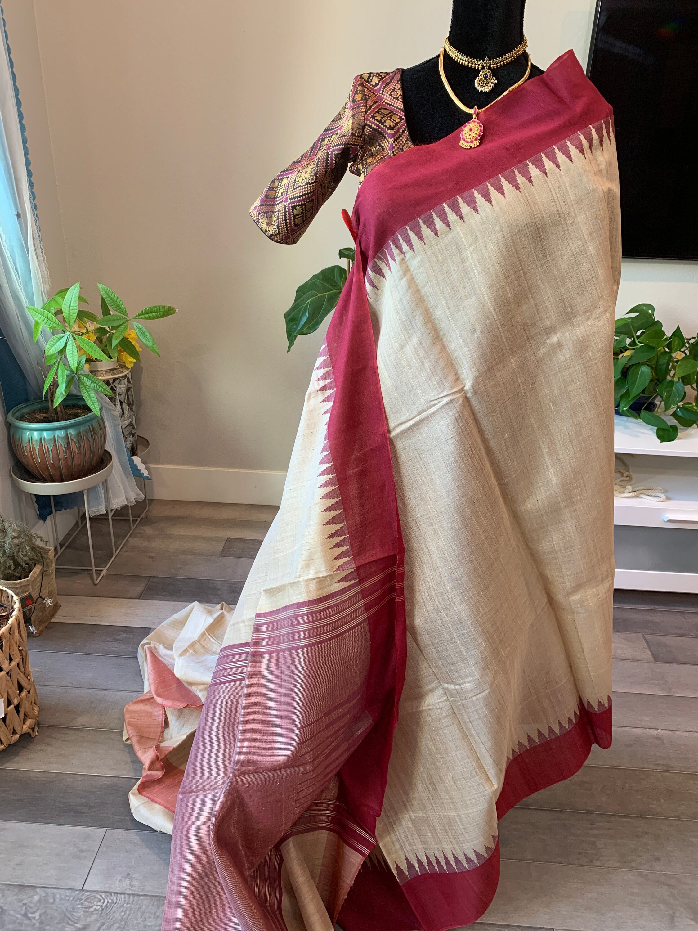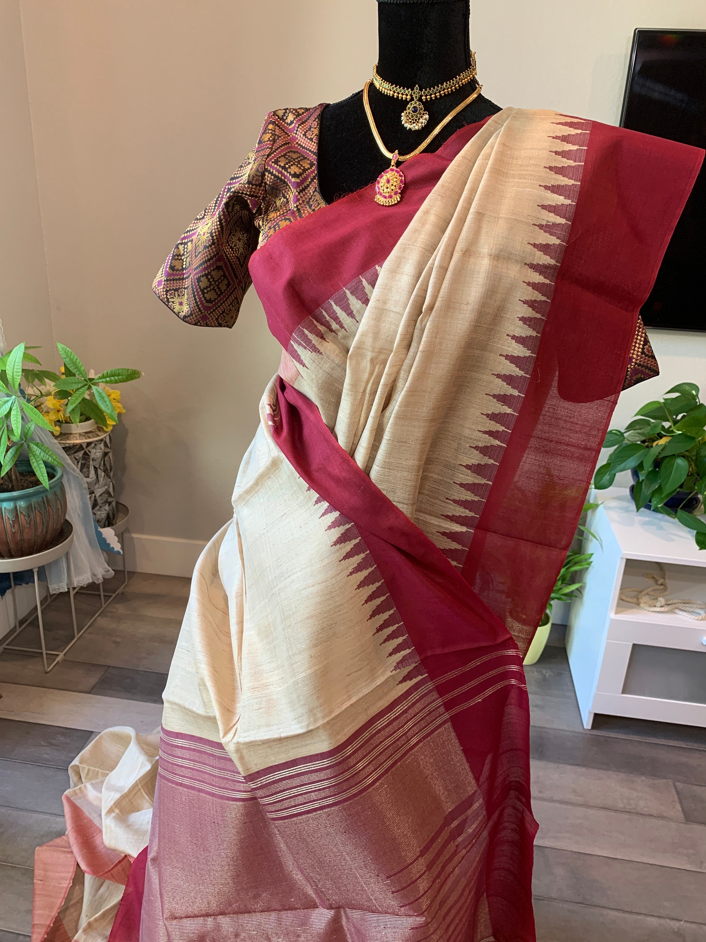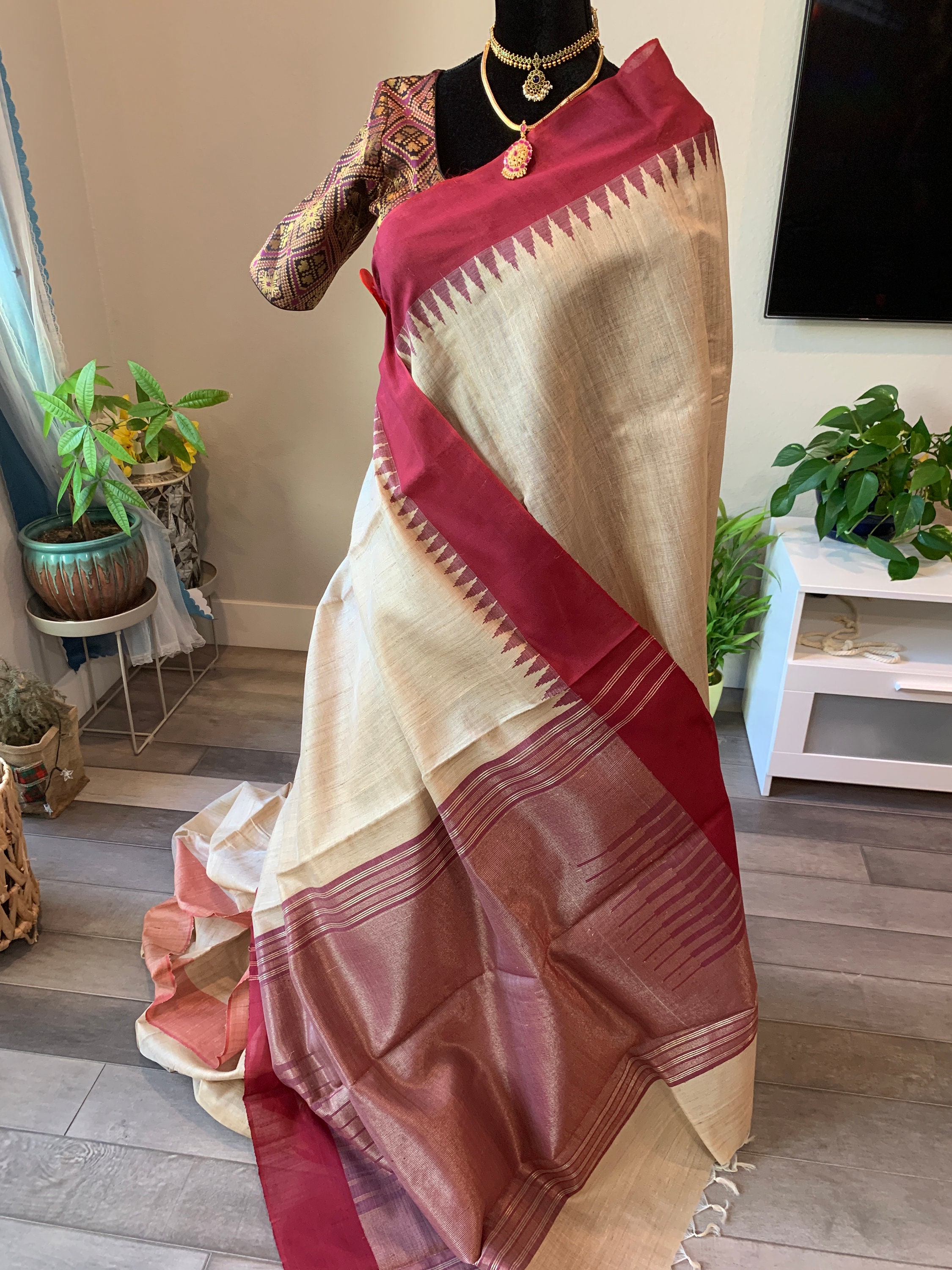 Size 36-44 adjustable, optional stitched blouse | Pure, silk mark certified raw silk saree | raw silk sarees online usa | tussar silk sari