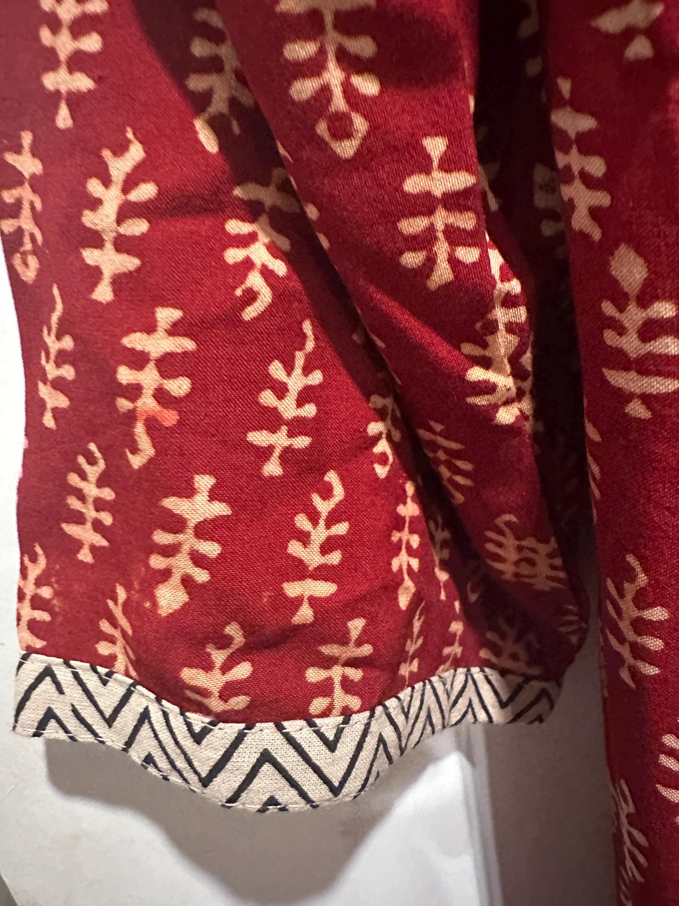 Adorned by beautiful embroidery work on the neck yoke, this plus size, rayon kurti with block prints can be worn as a casual wear. This is not a set and comes with only kurti.
